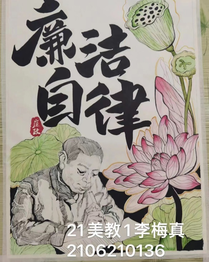 本次大赛以“廉洁在我心 自律伴我行”为主题,面向学院音乐教育、舞蹈教育、美术教育学生征集文化创意作品,共征集到优秀作品100余件。作品涉及书签、明信片、手抄报、绘画等多种形式。诸多优秀的廉政文化作品从同学们手中创作而出,各具特色,韵味十足,将廉政与艺术进行了完美的结合。