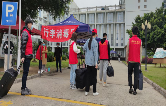 虽逢周末,但志愿者们自觉放弃了休假时间,早早地赶到学校。他们引导学生有序报到,积极地为返校学生进行行李消毒,帮助学生将沉重的行李提到宿舍。一天的志愿者服务,让大家都深感疲惫,但没有一个人有怨言,大家脸上都洋溢着善意的微笑,因为我们的服务为学生带来了方便,也为福州市艺术学校增添了一份温暖的色彩。