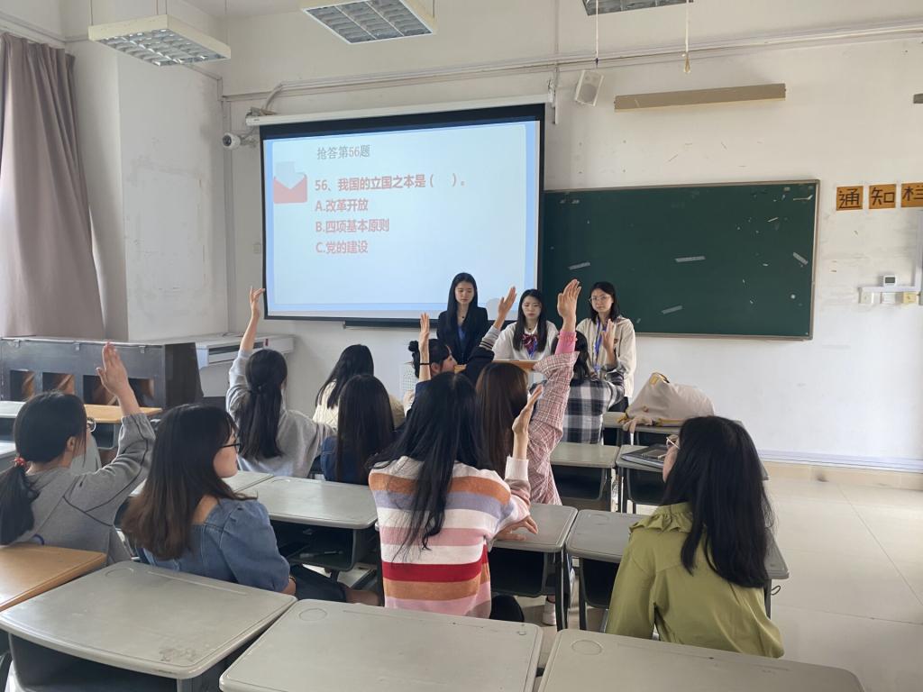 本次竞赛以中国共产党党史为主要内容,涵盖了革命战争的严峻考验、建设道路的艰辛探索和改革开放的创新实践等方面知识。知识竞赛分为三轮,第一轮为笔试,第二轮为三人抽签笔试对决,第三轮为抢答积分模式的决赛。整个竞赛活动现场氛围热烈,同学们积极参与,争先抢答。经过紧张、激烈的三轮赛程,最终评选出一等奖一名、二等奖一名、三等奖一名、优秀奖两名。