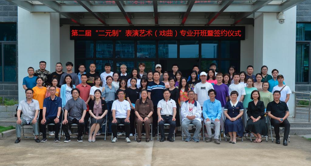 5月13日上午,我校在甘蔗校区举行第二届“二元制”表演艺术(戏曲)大专班开班暨签约仪式。福建省剧协主席、福建省文化和旅游厅艺术处处长吴新斌,福建省艺术研究院副院长白勇华,戏曲梅花奖获得者、福建省闽剧艺术研究会会长陈乃春,国家一级导演李幼斌,福建省京剧院院长孙劲梅,福建省实验闽剧院副院长林大立,福州市闽剧艺术传承发展中心主任杨东,闽侯县闽剧艺术传承发展中心书记潘振棋,以及我校党委书记陈荣生、副校长林旻、教务处处长葛思华、艺术系党政领导和“二元制”表演艺术(戏曲)专业全体师生出席。会议由校教务处处长葛思华主持。