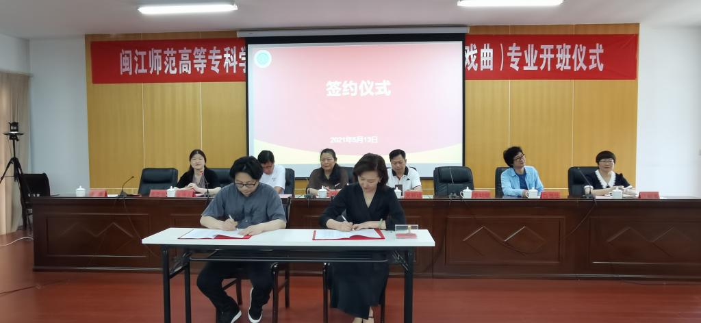 在签约仪式上,艺术系副主任(主持工作)、福州市艺术学校校长徐青与合作院团代表签订了联合办学协议书。