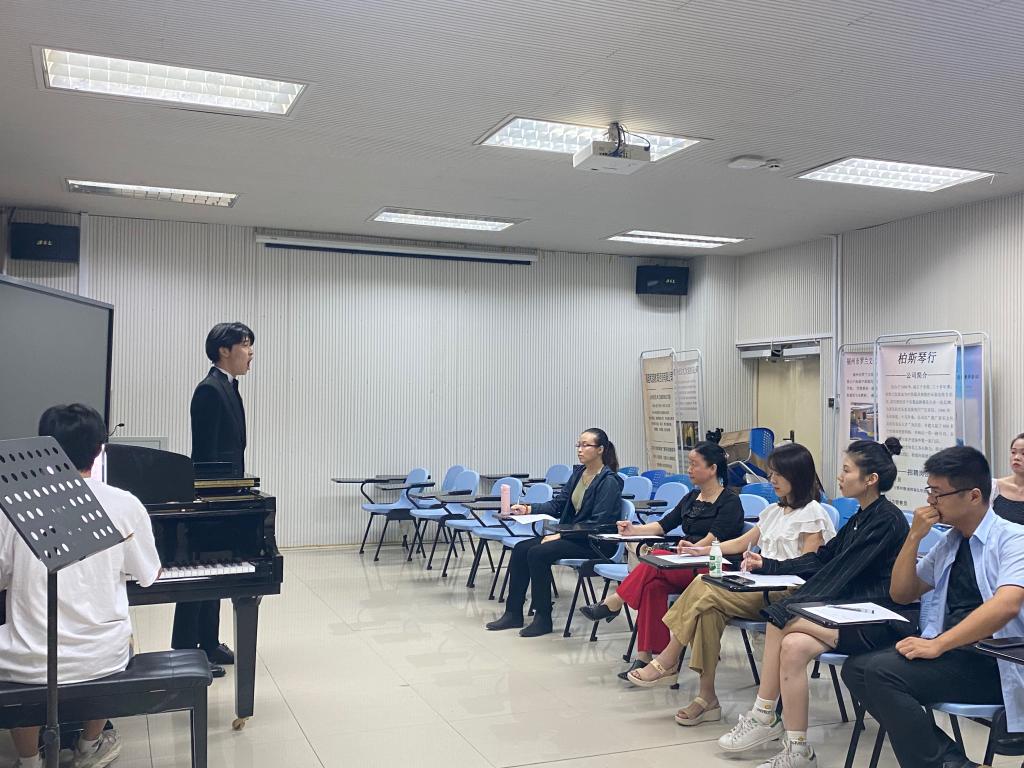 学生积极响应、踊跃报名,共有22名学生参与此次校选。本次选拔以歌曲演唱80%、视唱新谱20%的分值权重进行认真筛选。选拔内容按照国赛标准,分为歌曲演唱、视唱新谱两部分,本次视唱新谱部分由林鑫老师担任评委、并邀请了阳光学院现代音乐学院谢龙钟老师作为第三方评价,歌曲演唱部分由声乐教研室老师担评委。经激烈角逐,最终确定了沈意昕、陈晓彤、张茵琪、胡荣洪四位选手作为候选培养对象,进入下一轮的集训,备战省赛。