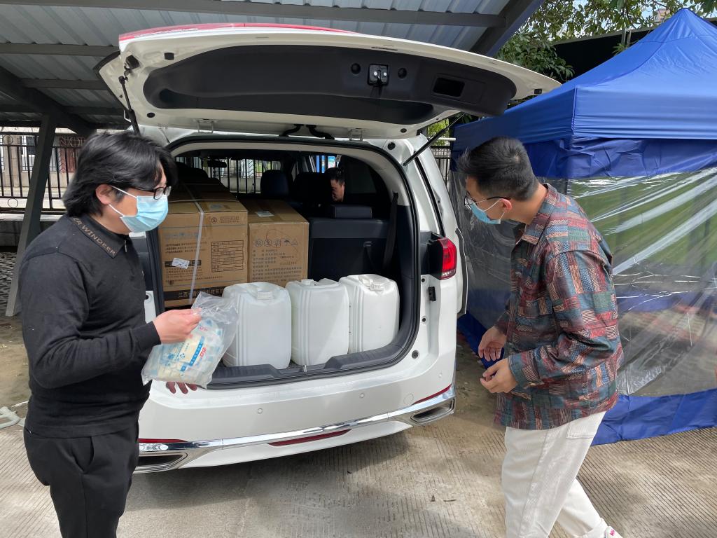 在将口罩、一次性手套及消毒水等防疫物资安全送到甘蔗校区之后,林旻副校长一行先后实地查看了校区快递柜及食堂等重点区域防疫措施落实情况,并深入学生宿舍详细了解线上教学进展及成效。