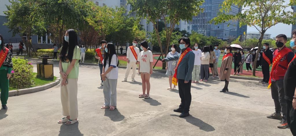 学院学工团队的党员教师们心系学生健康,守护学生安全,实行全员坐班制,第一时间投入疫情防控第一线。在校园封闭式管理期间,辅导员班主任下沉一线,与学生同吃同住,舍小家为大家,用实际行动践行党员教师的责任担当。在旗山校区,每日清晨,学院学生党支部书记、团委书记、学工负责人周宇航老师在群里发布当日卫健委最新通告和工作提示,带领辅导员们投入新一轮的“数战数决”。在甘蔗校区,教师党支部组织委员、甘蔗校区学生科长林隽永以校为家,连续十几天坚守岗位,组织班主任登记晨午晚检、摸排学生健康状况、更新学生“一人一档”、下宿舍检查安全和卫生情况......不舍昼夜,持续战斗。