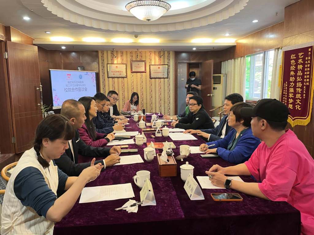 在座谈会上,杨校长指出,长期以来学校与戏曲院团就戏曲艺术人才培养开展了深入了的合作,携手在闽剧艺术薪火相传道路上笃定前行。他希望今后能够与戏曲院团进一步拓宽合作领域、搭建互动平台,推进院校合作向更深层次、更高水平迈进,共同培育更多符合新时代要求的戏曲艺术人才。福建京剧院及福建省实验闽剧院负责人均表示,希望能够与学校开展多元深度合作,一起培养更多符合戏曲行业所需要的戏曲后备人才,共同为非遗戏曲艺术高质量发展贡献力量。座谈会期间,杨校长还就人才培养、资源共享及教学实践基地建设等事项与福建京剧院、福建省实验闽剧院负责人进行深入探讨并达成初步共识。