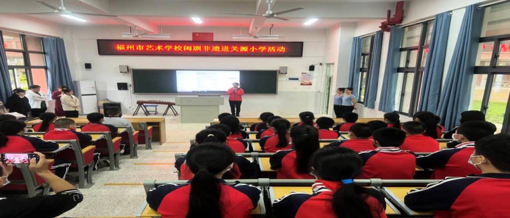 5月11日,闽剧教研主任林梦萍老师、副主任王华老师走进闽侯县关源小学开展进校园非遗文化展演活动。