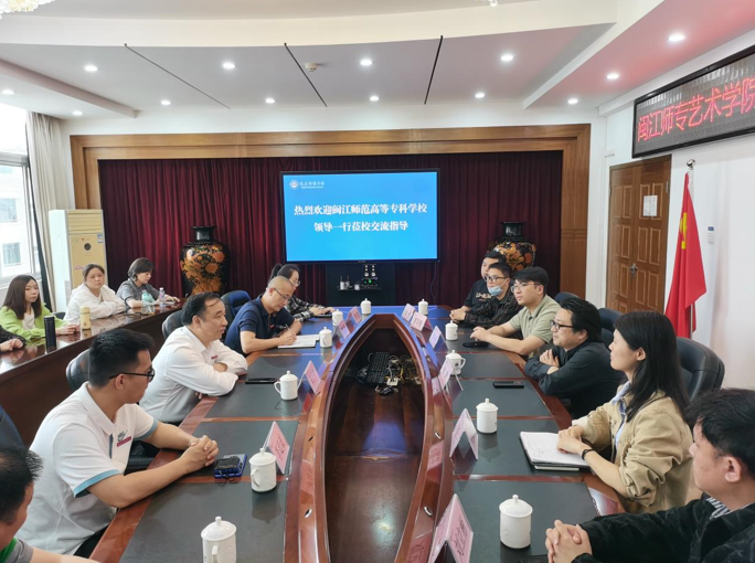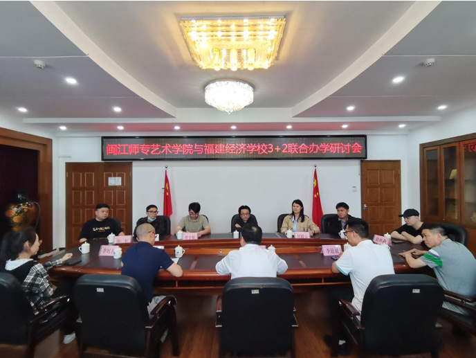 为贯彻落实《国家职业教育改革实施方案》,深入推进“3+2”联合办学工作,促进学院高质量发展,2022年5月27日,艺术学院院长徐青率队前往福建经济学校进行“3+2”联合办学研讨会,院团委书记、学生党支部书记周宇航,表演艺术教研主任刘毅云,美术教研室主任黄朝燊,钢琴与器乐教研室副主任刘立彬及相关各专业教师一同参会。福建经济学校党委书记、校长郑长青携校党委委员、副校长王养生,艺术专业系部主任龚发辉,招生就业办副主任李廷诚及音乐舞蹈教研室、平面设计教研室等各专业教师出席了研讨会。