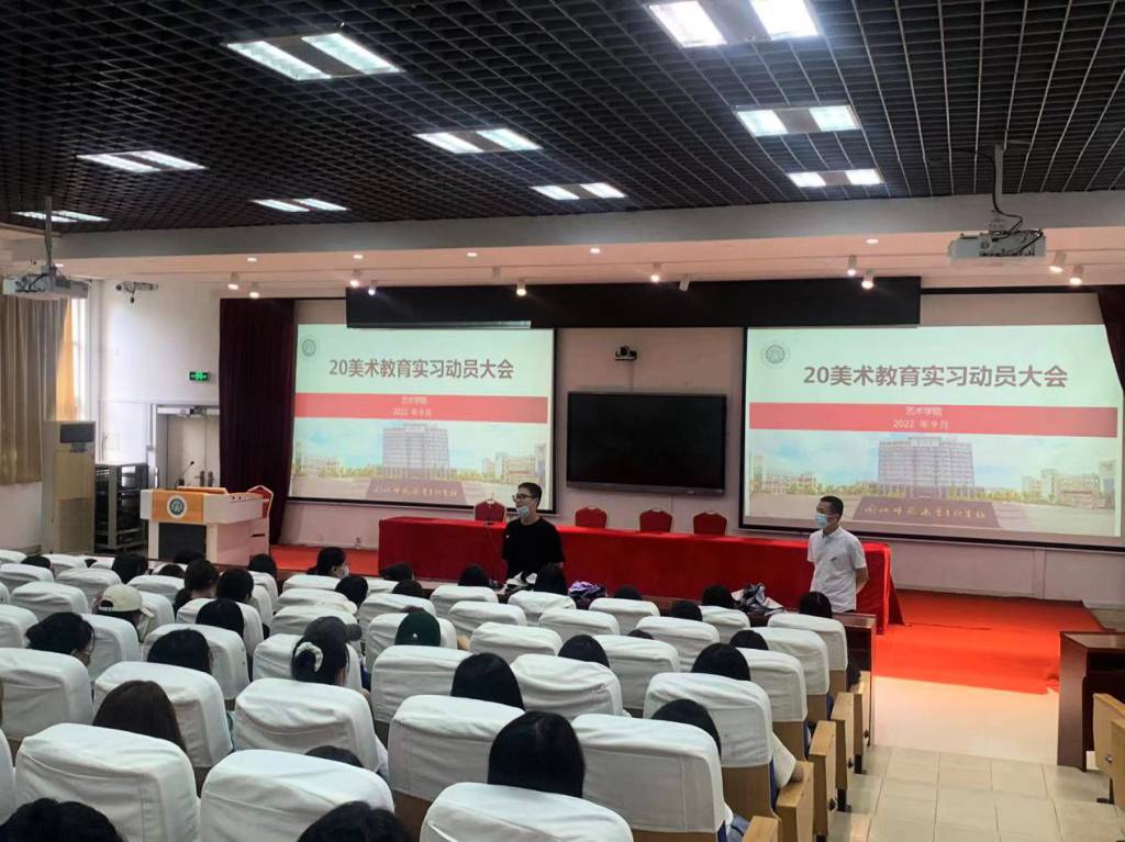 为扎实做好2023届毕业生顶岗实习工作,推进实习工作的顺利开展,进一步促进学生对所学知识和职业技能的实践运用、总结和深化,引导学生明确认识实习的目的和意义。9月7日下午,在学院党委书记江柳青、院长徐青的关心支持下,艺术学院美术教育专业实习生实习动员会在我校旗山校区3-2018阶梯教室召开。