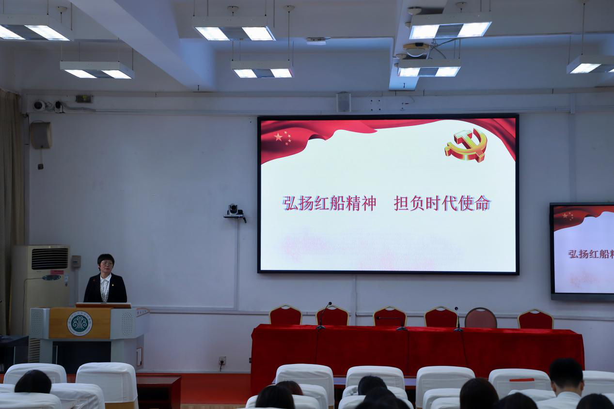 最后,艺术学院党委书记江柳青以《弘扬红船精神 担负时代使命》为主题同学们开展了培训第一课。江书记从“红船精神”的由来、“红船精神”的内涵和新时代如何赓续和弘扬“红船精神”三个方面为同学们展开教学,带领同学们了解中国共产党从“红船”启航到党的二十大胜利召开这101年辉煌的历史和成就,号召同学们认真学习贯彻党的二十大精神,不断增强创新意识、坚持首创精神,增强责任意识、坚持奋斗精神,增强宗旨意识、坚持奉献精神,立志做有理想、敢担当、能吃苦、肯奋斗的时代好青年。