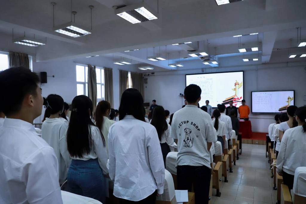 在开班仪式上,全体人员起立齐唱《国际歌》。接着外语商贸学院党总支书记林冉为本次培训班致辞。他介绍了本次培训班的培训方式和考核要求,鼓励同学们以本次学习为契机,增强对新时期党的路线、方针、政策的认识和理解,提高理论素养,坚定理想信念,积极向党组织靠拢,严格按照党员标准要求自己,在学习和生活中发挥先锋模范作用,努力做有理想、有本领、有担当的时代青年,争取早日在思想、行动和组织上入党。