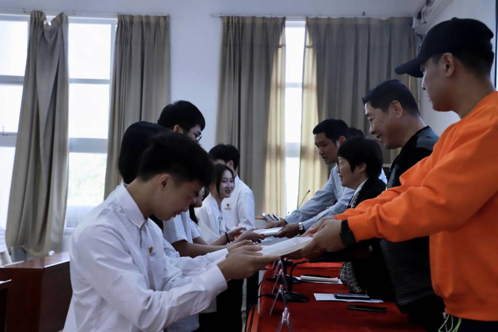 全体参会领导老师为参训学生代表颁发了本次培训的书目和教材。这不仅仅是书籍的传递,更是老党员对年轻入党积极分子的殷切期盼和谆谆嘱托,希望同学们能进一步坚定理想信念,激发入党的荣誉感、责任感和使命感,不断提升理论修养和水平。