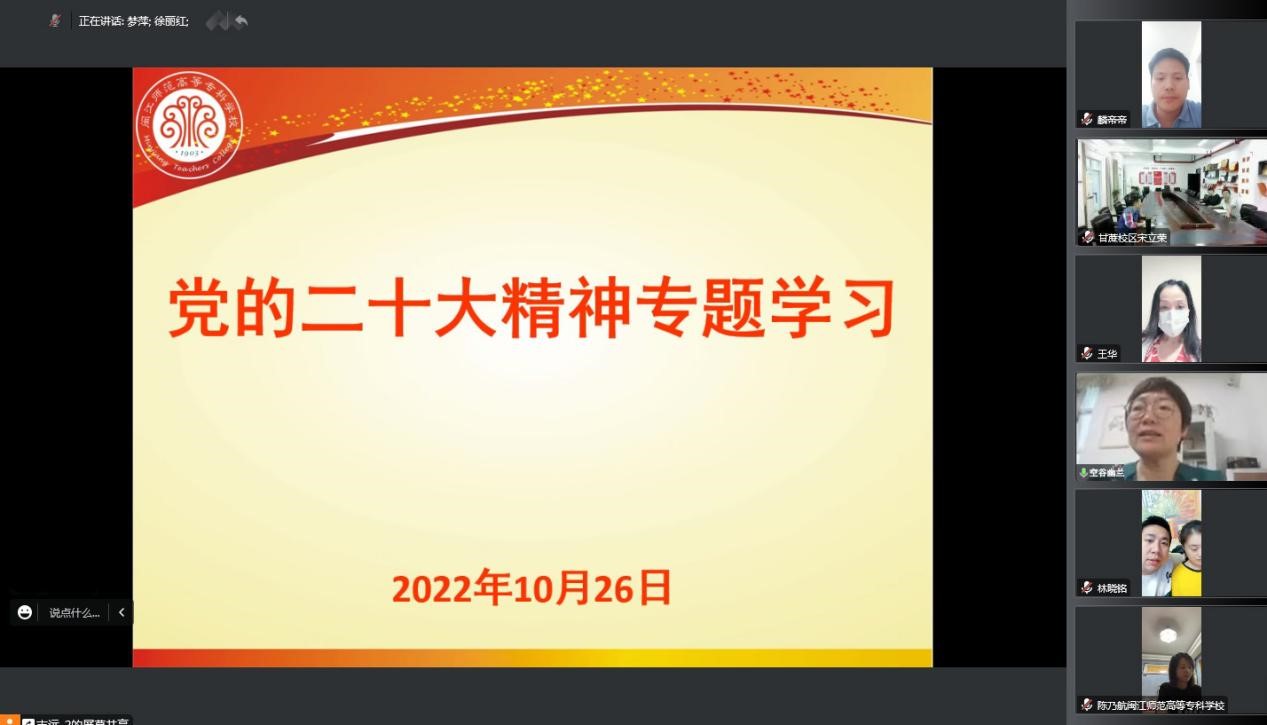 会议要求,要将学习宣传贯彻党的二十大精神作为当前和今后一个时期首要政治任务,认真谋划、精心组织。一要马上行动,迅速掀起学习宣传贯彻党的二十大精神的热潮。二要结合实际,切实抓好贯彻落实。要把学习宣传贯彻党的二十大精神同落实立德树人根本任务、弘扬中华优秀传统文化有机结合,为服务福州区域经济发展培养德智体美劳全面发展的艺术人才。三要全力以赴,统筹做好疫情防控工作和教学行政等各项工作,提前谋划明年工作思路。