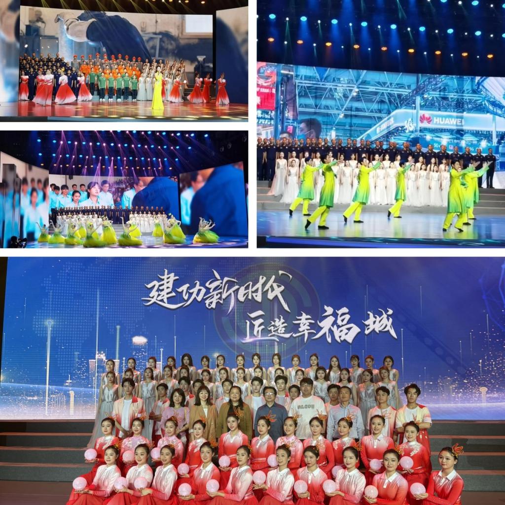 艺术学院参演的节目《薪火》《匠心追梦》《春暖花开》《梦想之光》,以歌舞和背景视频相结合的方式来呈现节目内涵,用声音传递爱与奋斗,展示新时代奋斗者积极向上、青春活力的精神风貌,凝心聚力,唱响时代之歌。舞台上的表演者们用优美的舞姿、动人的歌声展现着新时代职工昂扬向上的精神风貌,用不同的艺术表演形式为广大劳动者献上最美的赞歌。