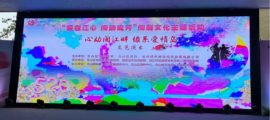 本场演出的地点设在闽江之心——福州江心岛公园。在历时半年多的改造提升后,江心岛于5月20日这个特殊的日子以全新的面貌展现给市民,此次闽剧文化主题活动是为配合打造江心公园闽剧文化主题广场,同时弘扬闽剧文化、加深非遗传承,让来到江心爱情岛的游客,在感受浪漫之岛的同时,也能近距离领略非遗文化艺术的魅力。