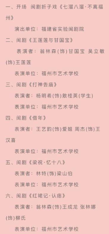 我校师生为到场的游客朋友们献上了《王莲莲与甘国宝》《借年》《武家坡》《红裙记》等传统闽剧折子戏,让广大群众在“家门口”就能欣赏到原汁原味的闽剧文艺作品。