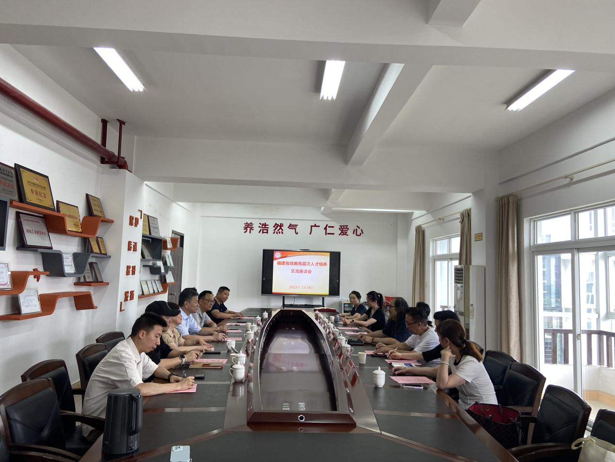 为进一步探索戏曲高层次人才培养路径,加强校校、校院合作,7月18日上午,我校在甘蔗校区四楼会议室召开福建省戏曲高层次人才培养交流座谈会。中国戏曲学院继续教育部、合作交流部主任姚志强、主任助理何燕漪、表演系青年教师林丹,福建省闽剧艺术研究会会长陈乃春,福建省实验闽剧院院长周虹、艺术总监陈琼,福建省芳华越剧院院长郑全,福建京剧院副院长(主持工作)孙劲梅,我校党委书记陈荣生、副校长陈强,艺术学院党委书记江柳青、院长徐青、副院长陈洪翔、林理杰、陈志勇等领导、专家出席并参加座谈。