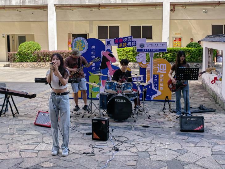迎新当日,新生从踏入校园的第一刻起,耳边就传来了阵阵歌声,艺术学院的迎新处正在举办隆重而丰富的音乐表演,有繁星合唱团带来的《侯官是我家》,有电声乐队带来的歌曲串烧,有筝乐团带来的现场演奏。在轻松愉快的艺术氛围下,现场的新生和老生们也按捺不住心中的热血,轮流上场,自由歌唱。听着悠扬的曲目,穿过一幅幅美术教育专业精美的画作,许多人放慢了脚步,许多人不禁驻足观看,纷纷感叹艺院学子的专业水平。迎新期间,学校党委书记陈荣生、校长杨建义、校党委副书记林旻、副校长谢敏峰、校纪委书记陈群、学生处处长郭静静、学生处副处长杨威涛等校领导也前来关心学院报到情况,同时也充分肯定了艺术学院此次的迎新表演的策划巧思。