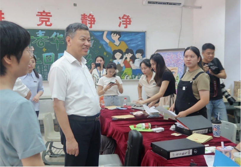 校领导陈荣生书记、杨建义校长等人莅临现场关心报到情况