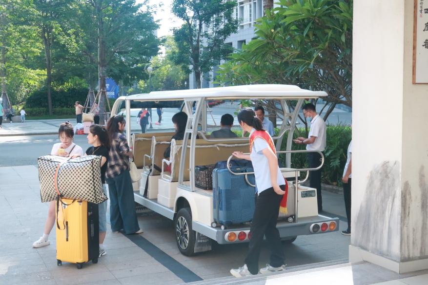 繁星志愿服务大队引导新生乘坐校内接驳车