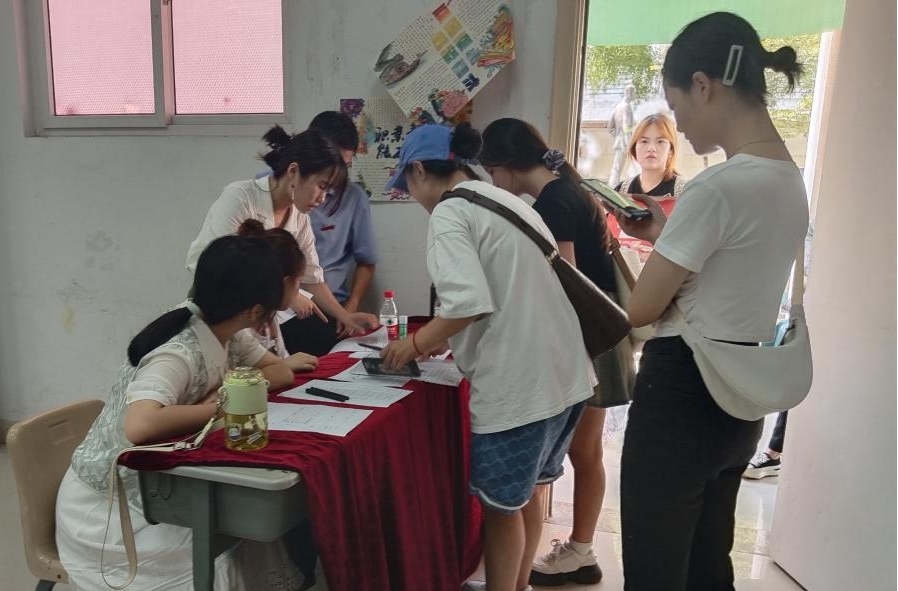 艺术学院辅导员老师们、新生助导们井然有序地开展新生报到工作