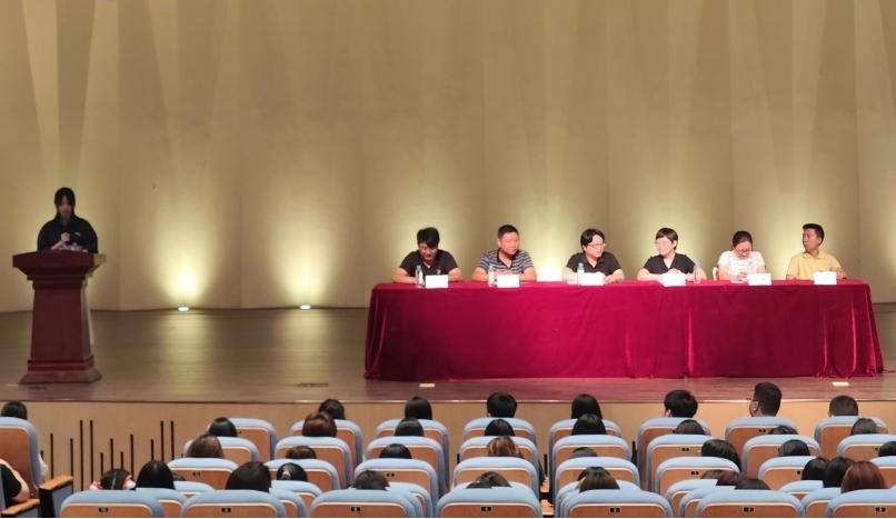 2023年9月16日上午,为更好地服务新生入校,让新生尽快融入大学生活,艺术学院在我校音乐厅举行了2023级新生开学见面会暨“开学第一课”活动。本次见面会由艺术学院团委书记周宇航主持,院党政领导班子、各教研室主任、新生班主任、辅导员出席。