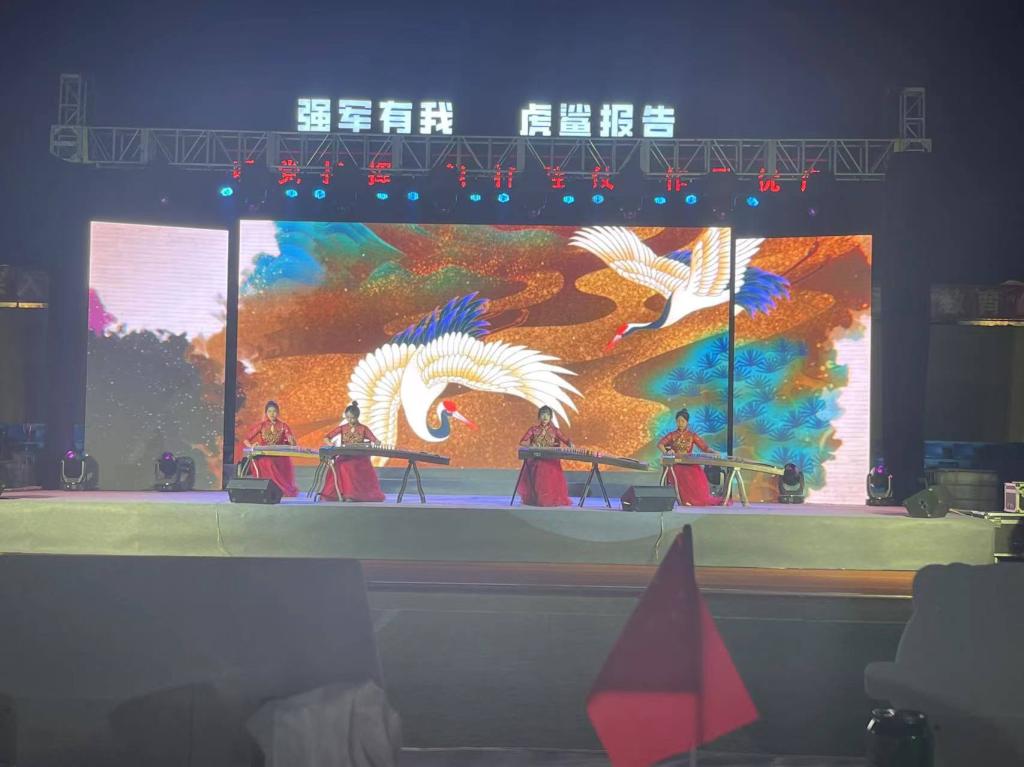 主题晚会在鼓舞《时代战鼓》中拉开帷幕。我校师生献演了筝乐齐鸣《Chain-E》、街舞《青春》、电声乐队《我的未来式》等节目,点燃了晚会的高潮,现场观众对我院学生所展示的专业水平和舞台表演表示了高度的赞扬。随后其他单位陆续表演了《朝阳》《阅海峡》《虎鲨力量》等节目。最后,晚会在合唱《虎鲨战歌》,永续虎鲨的精神中落下帷幕。
