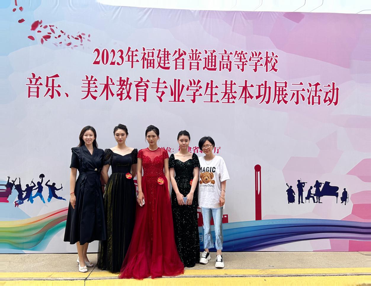 在刚刚结束的2023年福建省普通高等学校音乐、美术教育学生基本功展示活动中,艺术学院音乐教育专业学生团队斩获专科组团体一等奖(共1名),3位选手分别获个人全能一等奖(共1名)及三等奖2项(共3名)、“歌唱与钢琴伴奏”单项奖3项(共4名)、“自弹自唱”单项奖2项(共4名)、“合唱指挥”单项奖1项(共1名)以及“微课展示”单项奖1项(共4名),在全省同类院校中占据明显领先地位。美术教育专业学生团队获得专科组团体二等奖(共2名),学生分别获得个人全能二等奖1项(共2名)、三等奖1项(共3名)、“手工”单项奖2项(共5名)、“自选项目”单项奖1项(共5名)。