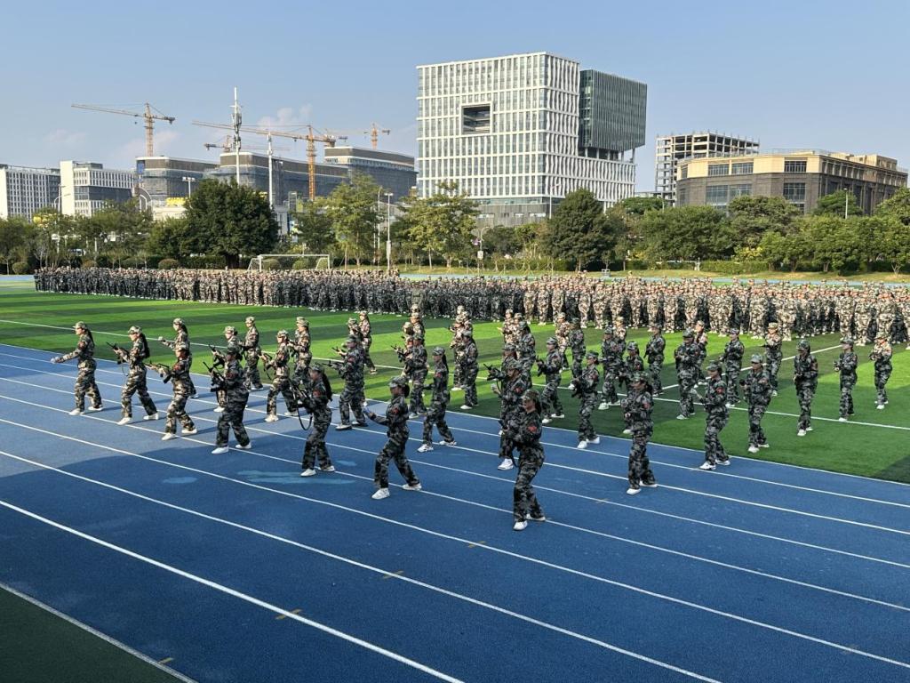 热血铸军魂,青春正勃发。伴着激昂雄壮的国歌,五星红旗冉冉升起,军训分列式展示正式开始。校领导、各学院领导、新生辅导员、军训教官队伍及全体2023级新生参加了本次活动。场上,各班方阵整齐列队,意气风发地踏入操场,以高昂的士气接受检阅。以23舞蹈教育为开场,艺术学院的方阵展军颜、聚军魂,伴随着激昂的军乐声,用整齐的步伐展现集体凝聚力。五年专各专业聚成的刺杀操方阵,以恢弘的士气,在校园写下浓墨重彩的青春景象。