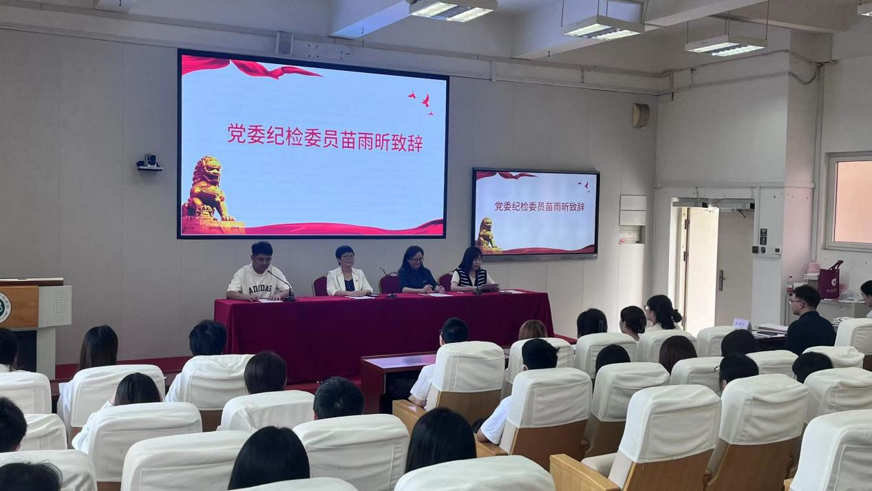 接下来,艺术学院党委纪检委员苗雨昕为本次仪式致辞。她阐明了本次培训班的培训方案、考核内容和纪律要求。希望此次积极分子培训班的课程能帮助学员更深入的认识和了解党的性质、宗旨、任务、党员的权利和义务,进一步端正入党动机,加强思想道德修养,接受组织的考验,争取早日成为优秀的共产党员。
