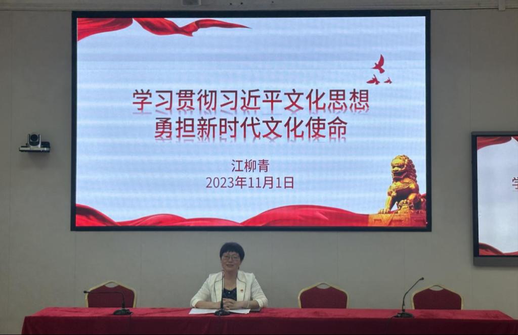 最后,艺术学院党委书记江柳青以《学习贯彻习近平文化思想,勇担新时代文化使命》为题为参训师生上培训第一课。她带领师生深入学习习近平总书记的重要指示,认真领会全国宣传思想文化工作会议精神,深刻把握习近平文化思想的重大意义、丰富内涵和实践要求,做到学思用贯通、知信行统一,自觉把习近平文化思想贯彻落实到艺术学院工作各方面和全过程。鼓励艺术学院师生立足于中华优秀传统文化的传承传播,着力探索有利于传承发展中华优秀传统文化的实施路径,立足“闽都”文化的丰富内涵,夯实人才培养、做实产教融合、提升艺术创作能力,用好习近平文化思想这一强大思想武器和科学行动指南,积极推动理论成果转化为扎实推进社会主义文化强国和中华民族现代文明建设的生动实践。