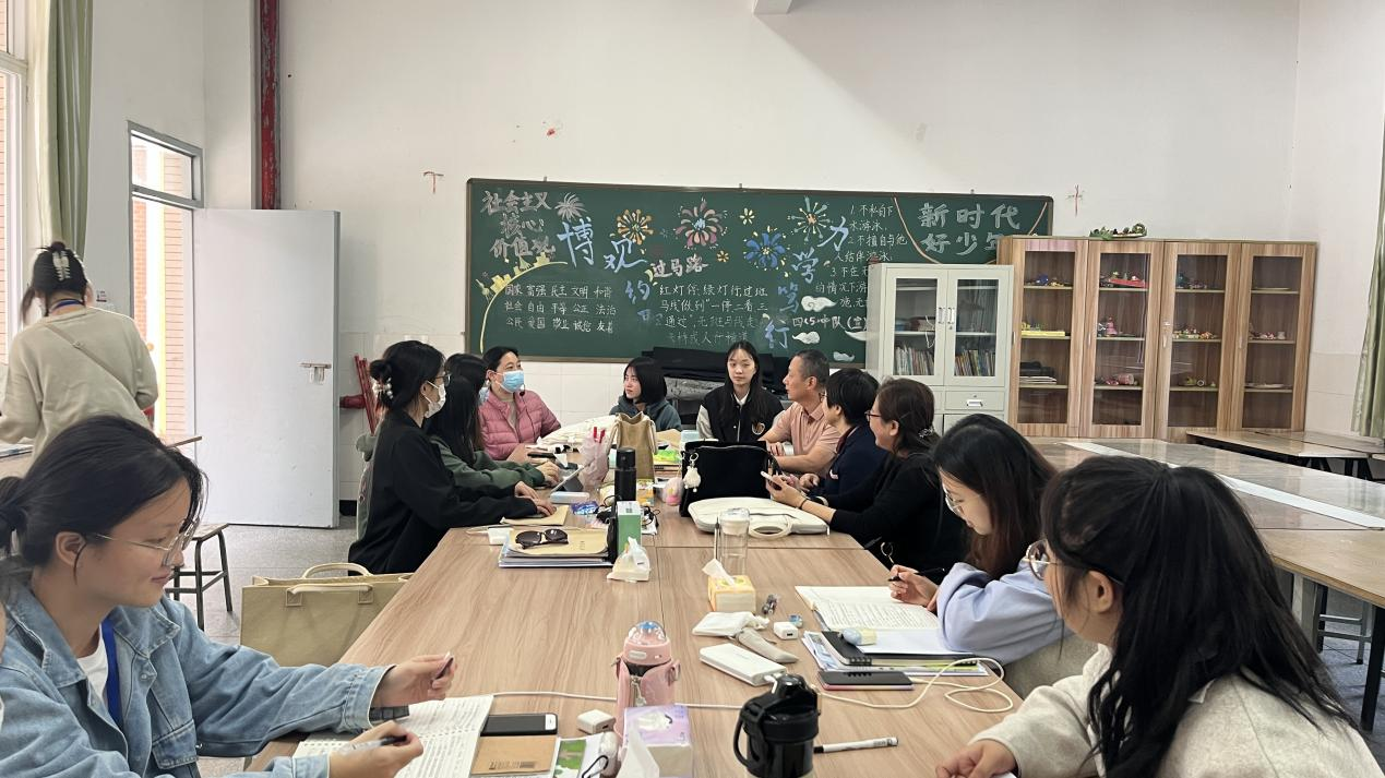 江柳青书记一行首先与实习学生进行了交流,了解学生的实习近况及存在的问题和困难。随后进入课堂,兴致勃勃地聆听了实习生陈以芯上的一节精彩的音乐课——《龟兔赛跑》。看到学生们在短短的一段时间内取得的进步,老师们感到很欣慰。在评课环节,实习校的老师们对学生们实习期间的表现给予了充分肯定。江柳青书记亲切勉励学生们珍惜实习锻炼机会,遵守纪律、认真学习,努力将理论与实践相结合,不断提升自己的专业素养和水平。