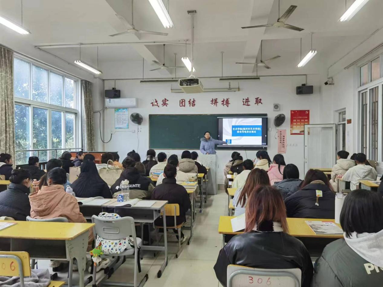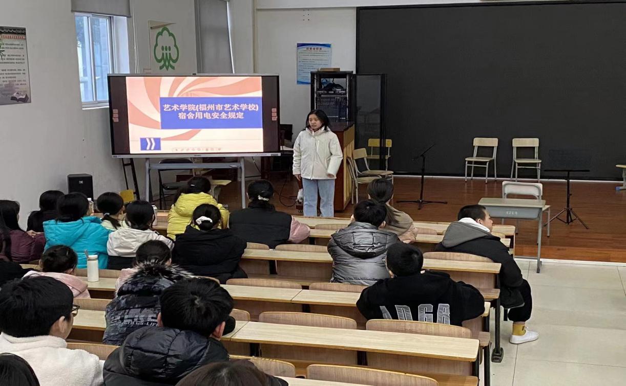 为了进一步强化全校学生的宿舍用电安全防范意识,牢固树立安全第一的思想,艺术学院(福州市艺术学校)在2月26日中午组织各班级开展了“开学第一课——宿舍用电安全”,努力为新学期保驾护航。