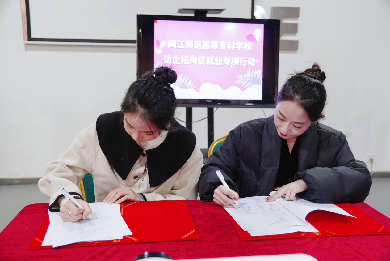 座谈会结束后,同行的2名2024届舞蹈教育毕业生参与了面试招聘,以扎实的舞蹈基础理论素养、专业基础知识与基本技能,获得了用人单位的一致好评,现场举行了签约仪式。
