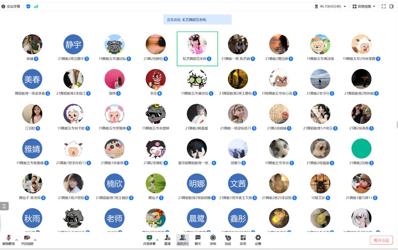 为做好2024届毕业生就业推进工作,推动高校人才培养与就业有机联动、人才供需有效对接,促进高校毕业生高质量充分就业,3月7日晚7点,艺术学院舞蹈教研室联合舞仙子少儿艺术教育、虹艺舞蹈艺术学校两家企业共同举办2024届毕业生线上招聘会。舞蹈教育教研室全体老师、辅导员、舞蹈教育专业全体毕业生共同参与了招聘会。会议由舞蹈教育教研室主任李佳主持。