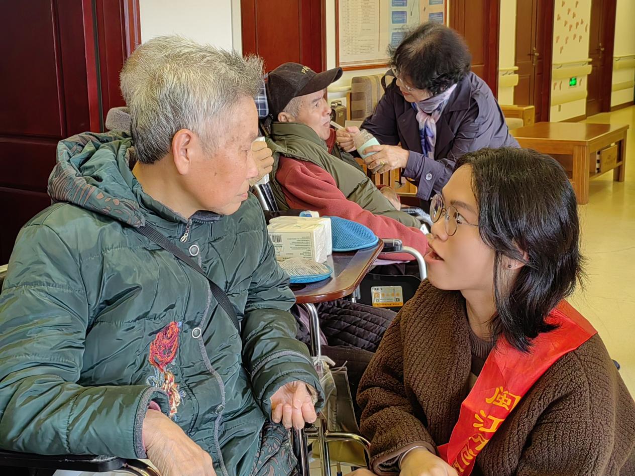庚续百年孝亲史,弘扬中华敬老情。在活动大厅,大家齐聚一堂,多才多艺的志愿者们为老人们呈上了诗歌朗诵、舞蹈、琵琶弹奏、合唱等精彩的节目表演,更有艺术学院副院长、国家一级演员、中国戏剧“梅花奖”获得者陈洪翔为老人们带来闽剧表演《双蝶扇》选段,现场掌声不断,气氛欢乐融洽,温情满满,欢声笑语一片。