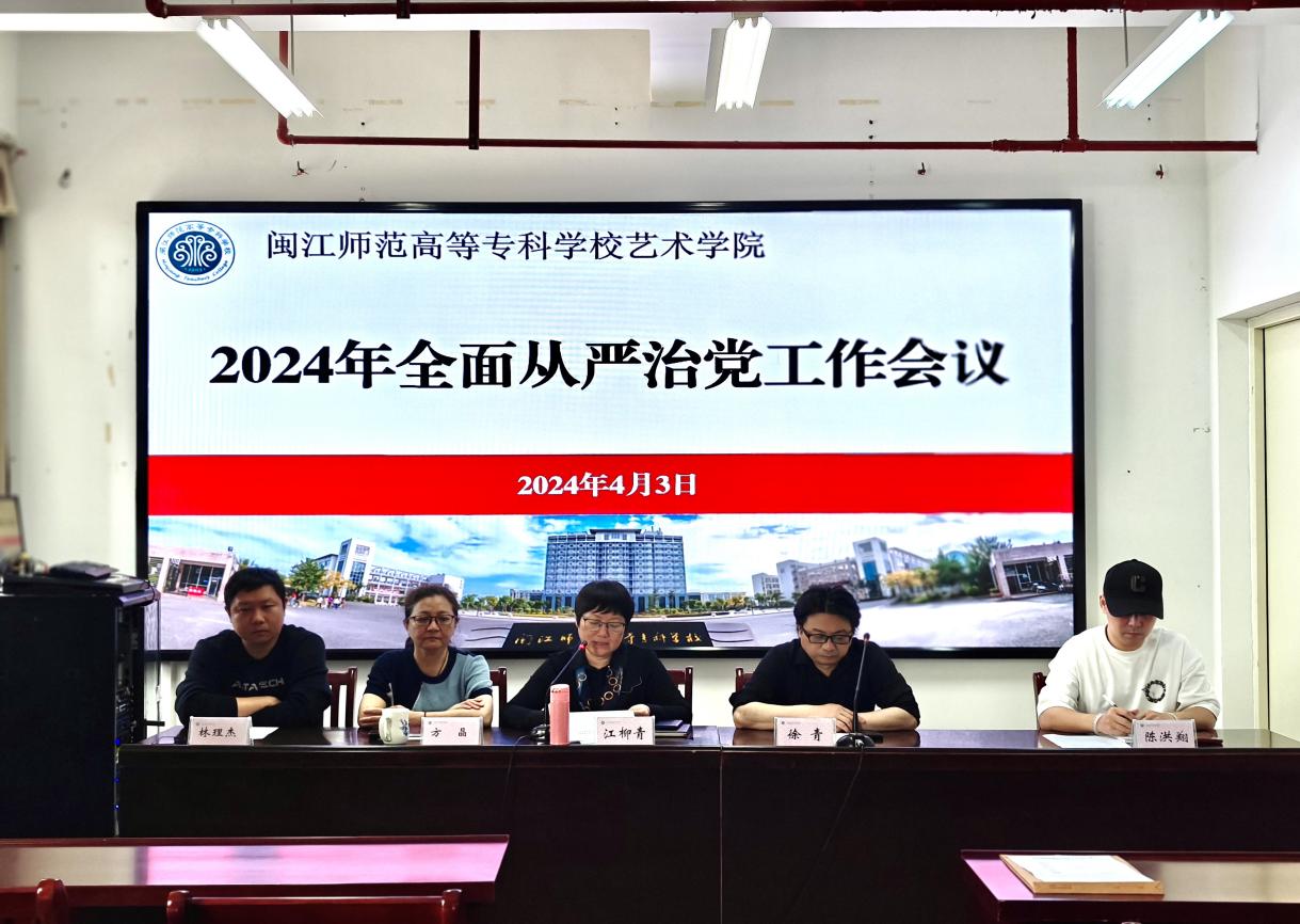 2024年4月3日下午,艺术学院在旗山校区召开全面从严治党暨警示教育大会,艺术学院党政联席会成员、党委委员、全体党员及思政教育工作者参加会议,会议由党委书记江柳青主持。