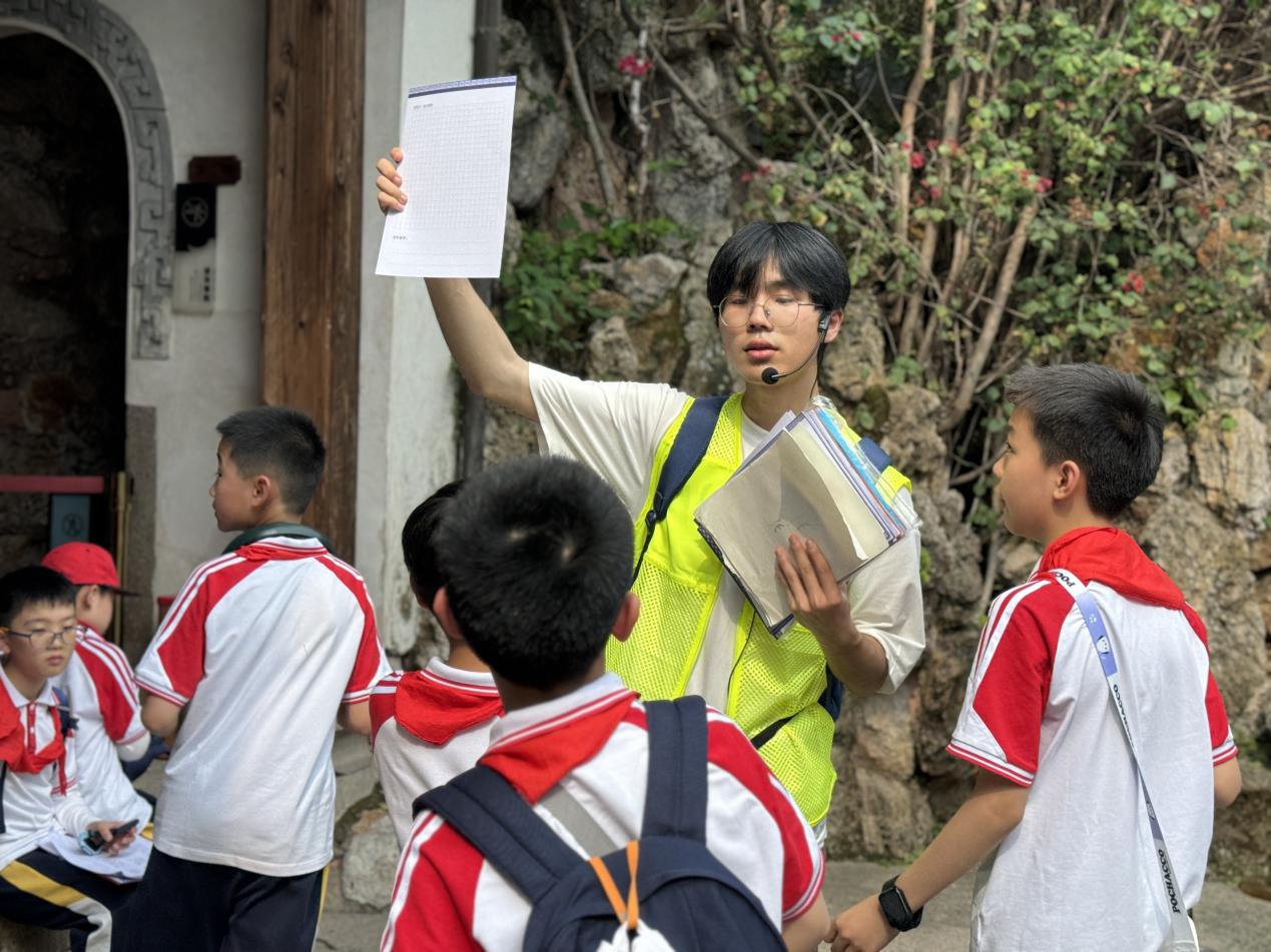研学活动当日,我院32名学生志愿者带领福州市钱塘文博小学400余名学生来到三坊七巷,走进水榭戏台,穿梭在小黄楼、畲族馆、台湾会馆、郭柏荫等古建筑中,找寻不同类型的纹样,了解纹样里的中国故事,探寻纹样里的两岸溯源。并通过分组竞赛、答题闯关、设计纹样文创等活动,让钱塘文博小学的孩子们了解中华优秀传统文化,提升创新创造能力。