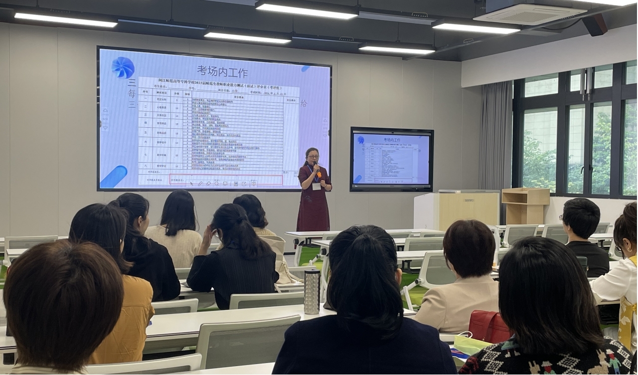 为深入贯彻落实习近平新时代中国特色社会主义思想和党的二十大精神,推进教师资格制度改革完善、教师资格制度实施工作,根据《教育部教师资格认定指导中心关于做好2024年教师资格制度实施工作的通知》(教资字〔2024〕1号)工作要求,艺术学院2024届师范生教育教学能力考核面试工作于2024年4月13日在旗山校区产创楼顺利举行。