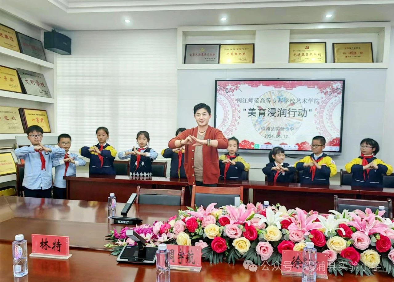 为更好贯彻落实中共中央办公厅、国务院办公厅《关于全面加强和改进新时代学校美育工作的意见》和《福建省教育厅办公室关于实施美育浸润行动计划的通知》,落实教育部和福建省教育厅关于实施美育浸润行动计划的有关要求,4月12日,艺术学院美育浸润行动走进霞浦县实验小学。本次浸润行动围绕一次研讨会、一堂美育课、一场美育演出来展开。