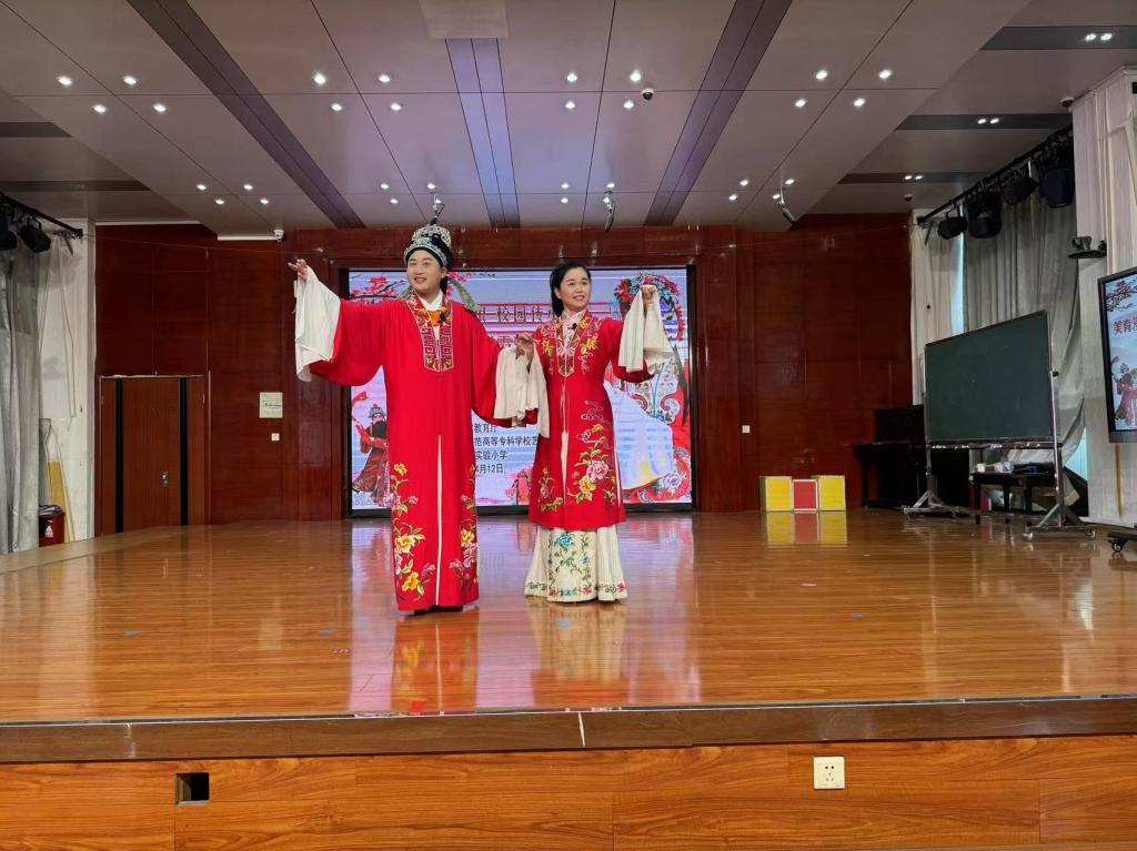 在开展的闽剧专场活动中,学院闽剧教研室主任、国家一级演员林梦萍为霞浦实小师生传授、普及闽戏小知识,学院闽剧教研室林特、张林娜老师表演闽剧《荔枝换绛桃》,学院学生周杰表演闽剧《忆十八》,并与现场实小师生互动。在老师们的演示和指导下,短短几分钟的学习,实小师生举手投足间都有模有样,这神奇的戏台和戏曲的演绎在大家的心中播下了一颗亲近传统文化、传承这古老又美好的民间艺术的种子。