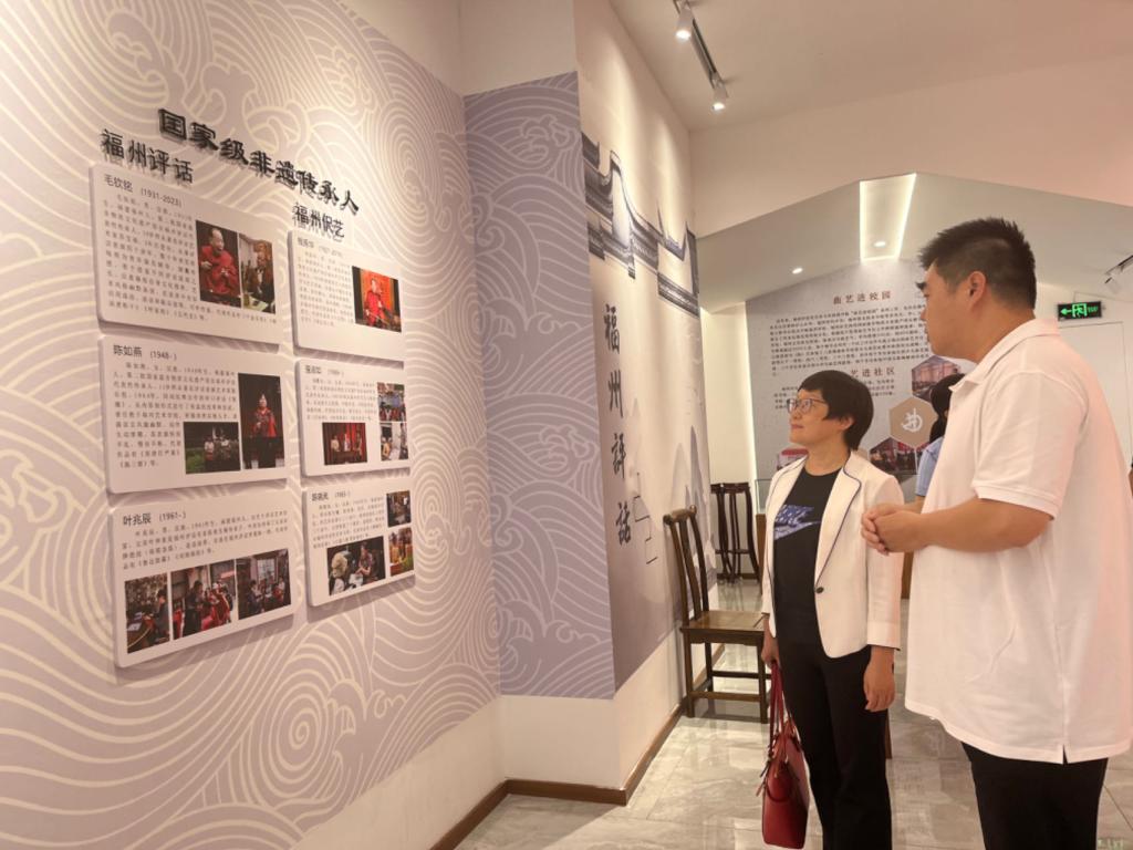 调研组一行在福州评话伬艺传习所陈锋书记的引导下,参观了福州评话伬艺展示区及演出区等,直观了解了福州评话伬艺的历史脉络、艺术价值及传承情况。
