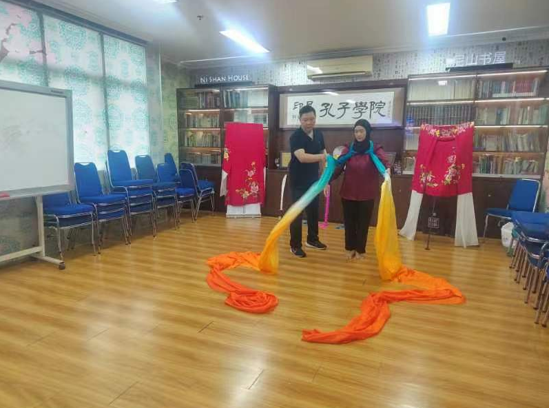 签约仪式结束后,林理杰为孔子学院师生开展了主题为《中国传统文化戏曲》的讲座。林理杰详细地讲解与有趣的表演互动,让师生们近距离感受到中国戏曲的独特魅力。这场授课活动不仅让印尼师生们对中国传统文化有了更深刻的认识,也增进了他们对中国文化的兴趣和喜爱。