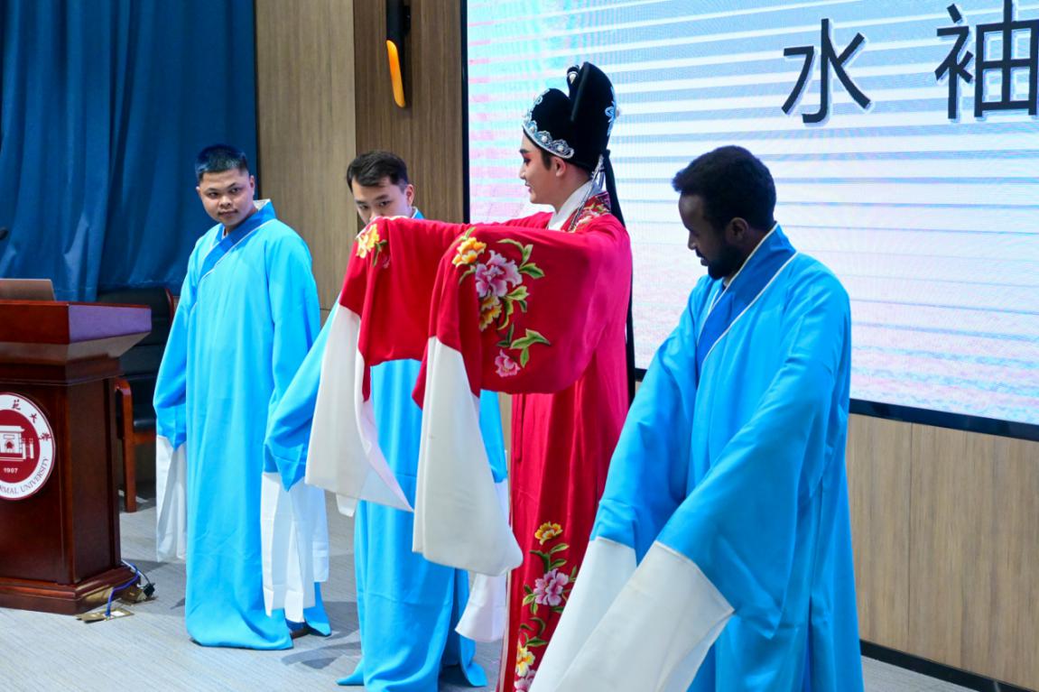 为进一步提升海外留学生对中国传统戏曲艺术的了解与兴趣,助力中华优秀传统文化的传播与弘扬,5月15日下午,我校艺术学院与福建师范大学海外教育学院联合开展了一场别开生面的戏曲文化艺术沙龙活动。共有45名来自师大海外教育学院的国外留学生参加。