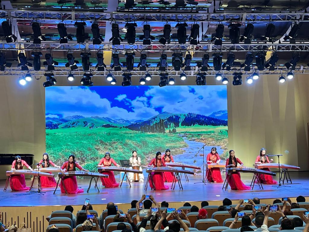 我院为此次汇演献演了具有新疆元素的节目,有新民乐《最美的花》、古筝重奏《天山之春》以及竹笛独奏《帕米尔的春天》。另外还有我院3位新疆籍学生与其他学院的新疆学子共同带来的新疆舞蹈《Toxkanlik》。美妙的乐音、动感的舞蹈,现场的观众被我院学子的精湛技艺、热情好客、朝气蓬勃深深感染,现场时常爆发雷鸣般的掌声。
