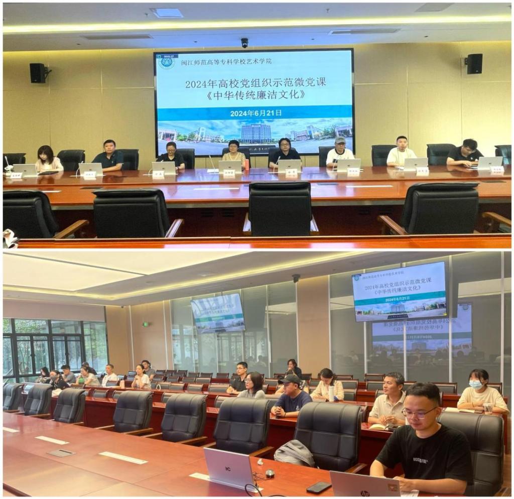 同时,艺术学院还采取集体观看形式,收听收看2024年高校党组织示范微党课第1讲《中华传统廉洁文化》。本次微党课由中国人民大学、北京师范大学、华东政法大学3所高校的党委书记、党委副书记、教师党员代表和学生党员代表等讲述中华传统廉洁文化的精髓和深刻内涵。观看结束后,党员们纷纷表示,这是一堂生动的理想信念教育课,接下来要进一步增强自身廉政意识,在廉洁自律上作出表率,以实际行动践行忠诚干净担当。