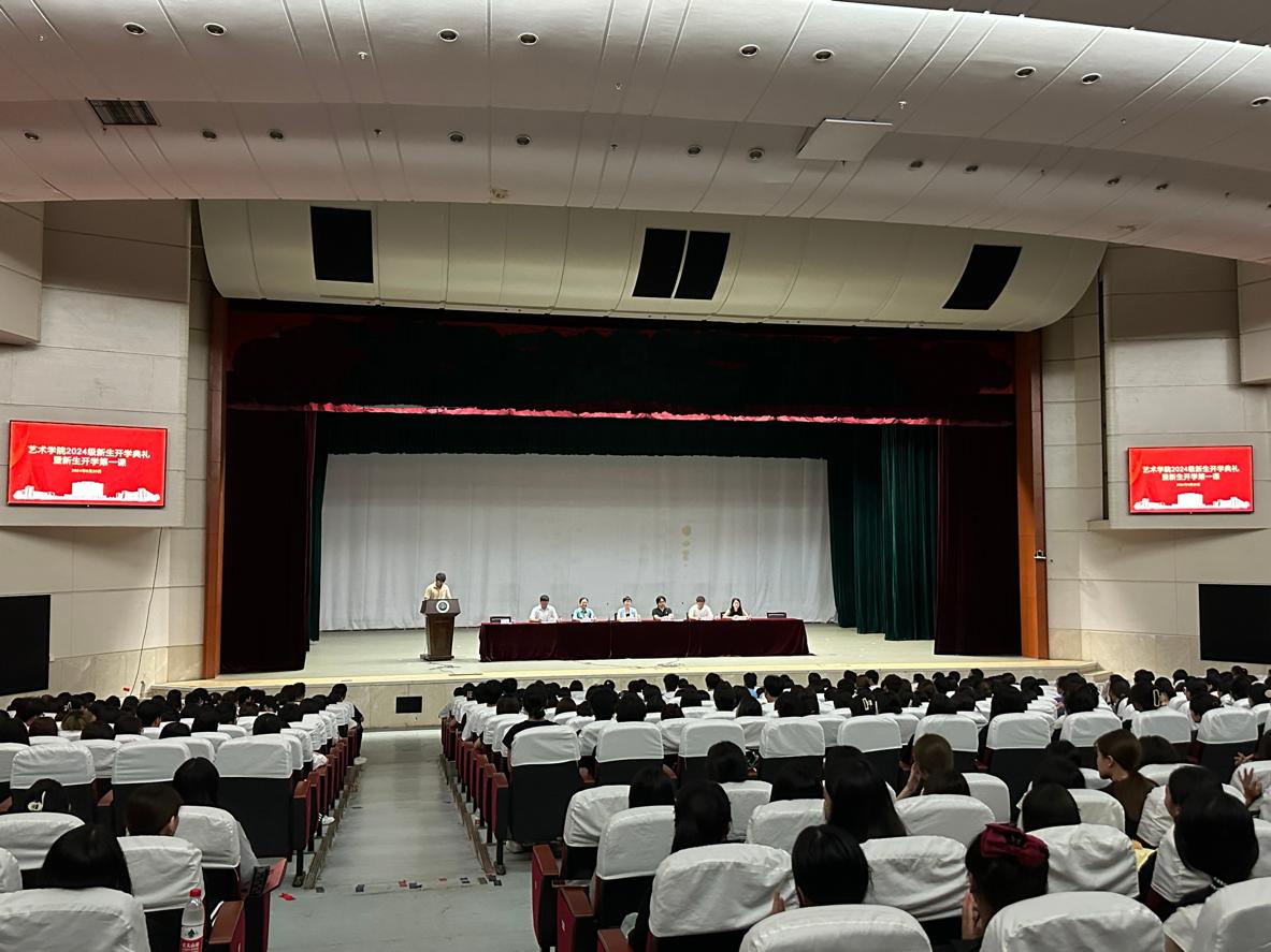 2024年9月20日上午,艺术学院在我校旗山校区学术报告厅举行了2024级新生开学典礼暨“开学第一课“活动。校党委委员、副校长、艺术学院党委书记江柳青、艺术学院院长徐青、副院长方晶、陈洪翔、林理杰、综合科科长林珊湉出席本次活动,各教研室主任、新生班主任、辅导员共同参与。本次典礼活动由艺术学院团委书记周宇航主持。