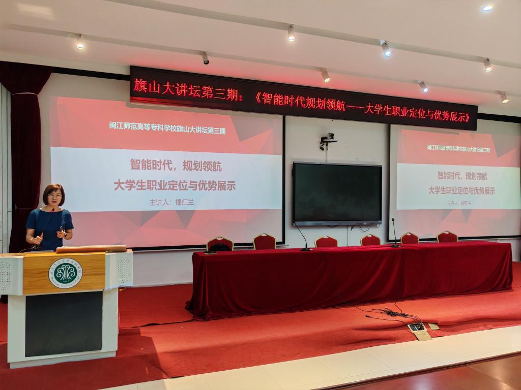 2024年10月14日晚,艺术学院于旗山校区2018教室举办旗山大讲坛第三期主题讲座活动。此次讲座特邀全球职业规划师、国家就业指导师、福建省教育厅就业创业培训导师揭红兰教授进行题为《智能时代,规划领航:大学生职业定位与优势展示》的职业规划辅导。艺术学院团委书记周宇航、全体辅导员、毕业班班主任及2025届毕业生共同参与此次讲座。
