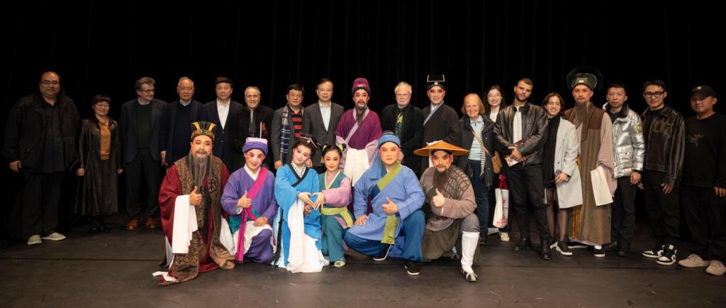 演出结束后,陈力公使夫妇,中国戏曲学院院长、第九届巴黎中国戏曲节评委会中方主席尹晓东,法国文化部戏剧荣誉总监、第九届巴黎中国戏曲节组委会法方主席余尔斯及巴黎中国文化中心主任刘红革等领导、嘉宾专程上台与演员们合影留念。刘红革主任对演出给予了高度评价,并期待我校闽剧艺术交流团组能够再次来访,为法国观众带来更多精彩的戏曲表演。