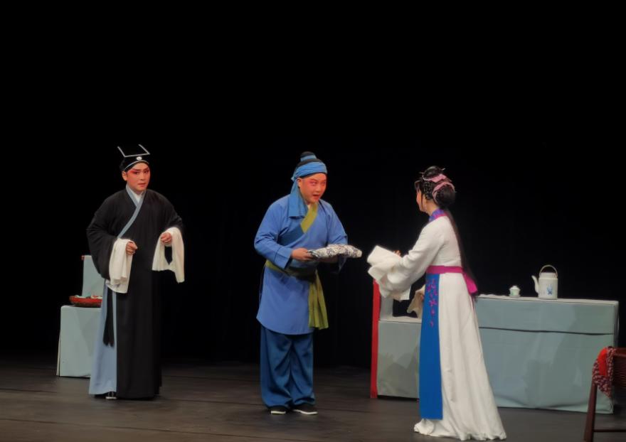 演出现场,演员们身着精致的戏服,凭借精湛的演技和生动的表情,将剧中人物的情感纠葛和感人故事演绎得淋漓尽致,现场掌声阵阵和赞誉连连。演员们精湛的表演功底让许多观众入戏很深,有的拉着导演倾诉剧目结尾挥之不去的意难平;有的眼里噙着泪水上台与演员合影并激动地对演员说:“你们演得太好了,很荣幸能看到这场演出给我带来很不一样的感受,很期待再次看到你们的精彩表演”;有的冒着严寒静静等待演员们卸妆完之后留下微信等联系方式。幽默风趣的语言让人开怀大笑,“欲死还生,欲生还死”“欲认未认,未认欲认”情感挣扎又让人为之动容、潸然泪下。这就是中华优秀传统戏曲艺术的独特魅力所在。