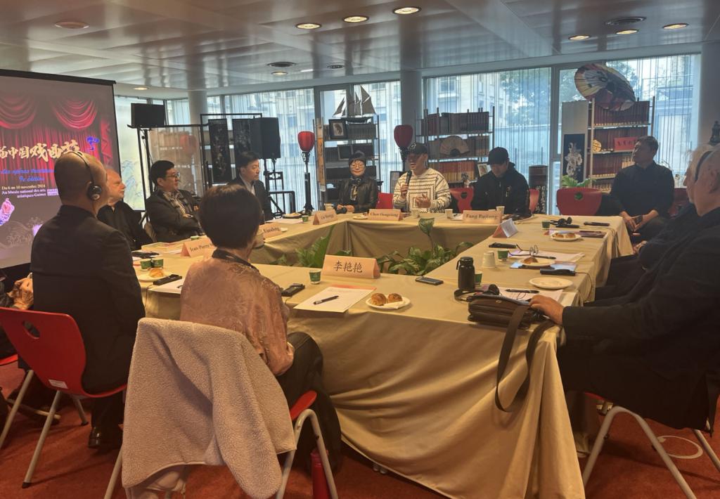 同日,中法艺术家戏曲研讨沙龙也在巴黎中国文化中心举行。我校副校长江柳青、艺术学院副院长陈洪翔、林理杰以及闽剧名家陈乃春、闽剧传承人陈志勇等参加了此次沙龙。会上,我校闽剧名家陈乃春以其深厚的艺术底蕴和丰富的舞台经验,生动诠释了闽剧的独特韵味,并分享了在习近平总书记的深切关怀下,学校在戏曲领域教育改革、人才培养方面的有益探索及闽剧艺术传承发展的丰硕成果。